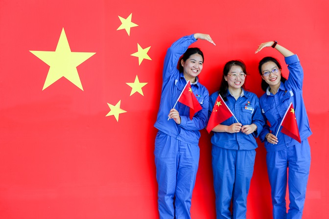 與國旗合影,為祖國祝福