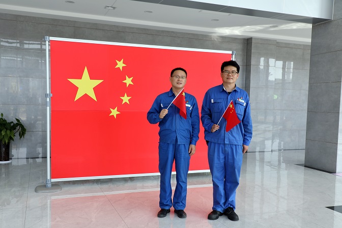 升旗儀式結(jié)束后,職工們激動的心情久久不能平靜,紛紛拿出手機記錄下寶貴瞬間。大家揮舞手中的紅旗,在“熱烈慶祝中國共產(chǎn)黨成立100周年”的大展板前擺個造型……對祖國的無限熱愛定格在一幅幅難忘的畫面里,銘刻在九月澄澈的廠區(qū),也深深地烙印在每個人的心間。