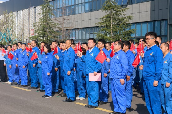 上午九時整,升國旗儀式正式開始。100余名干部職工整隊入場,在安彩光熱科技廣場組成方陣。國旗護衛(wèi)隊邁著鏗鏘有力的步伐,護送鮮艷的五星紅旗正步走向旗桿。“升國旗,奏國歌!”伴隨著雄壯的國歌聲,升旗手迎風振臂,鮮艷的五星紅旗冉冉升起,在晨光下熠熠生輝。仰望國旗,每一個人都無比激動、無比自豪,臉上洋溢著真摯的愛國之情。